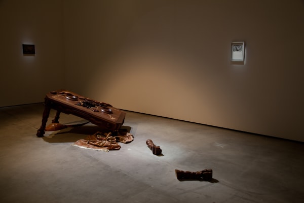In Staggering Matter Chen revisits some of the concepts he explored in his project the LiQUiD STATE, particularly in regards to self-knowledge and the imagining of the body. Through his new installations, videos, paintings, and drawings, Chen moves the oppressed and restrained body through various forms, personalities, and perspectives in an effort to extract himself from his work. When one is emptied of reality and history, no matter the sense of fearlessness or failure, the result is helplessness when coping with the weight of history. This sense of history is transformed, by the digital age’s speed and large amounts of information, into a vast imaginative space.