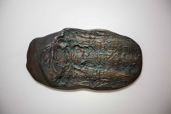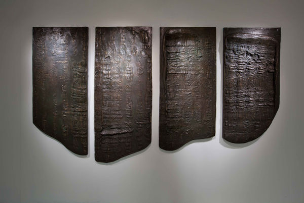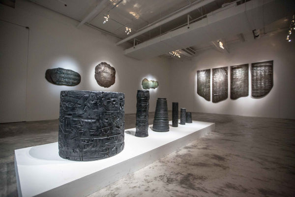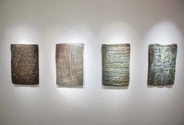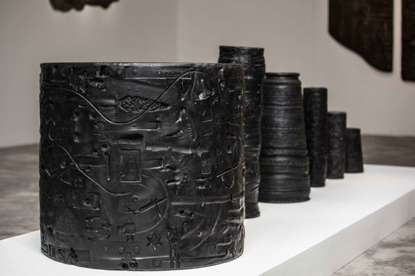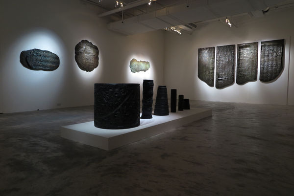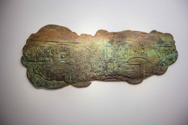 In Mapping Folds of the Body, the artist works with everyday objects such as toys, tools, painting frames, disassembled fitness equipment, even electronic or industrial waste to produce large engraved cylinder seals, similar to those from ancient Mesopotamia that were used to document significant events. Repeatedly the artist rolls these large cylinder seals along to create impressions on modeling clay; the results are bas-reliefs that defy boundaries of image and text. The traces and marks left behind by the weight of the artist’s physical being during this process reflect the connection between the body and the exterior world in the practice of art. Together these authentic objects born out of the artist’s manual labor, which imitate their Mesopotamian counterparts, outline an individualized civilization, where familiar yet foreign imagery attests obscurities that characterize contemporary living.