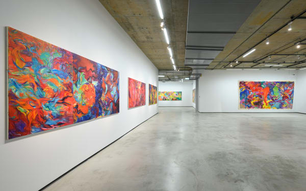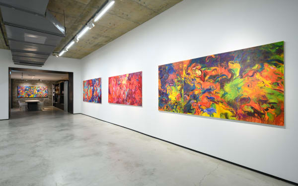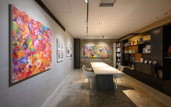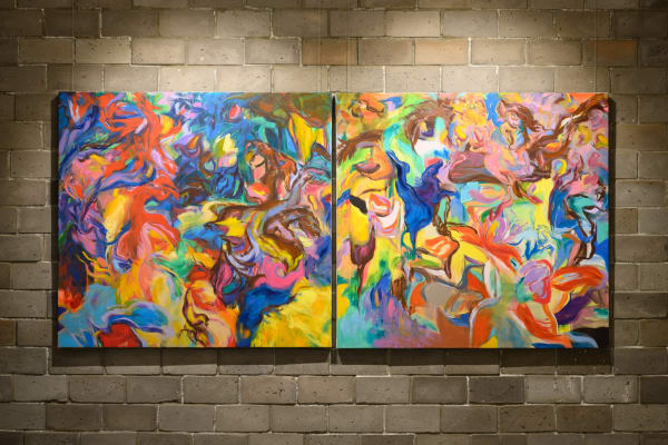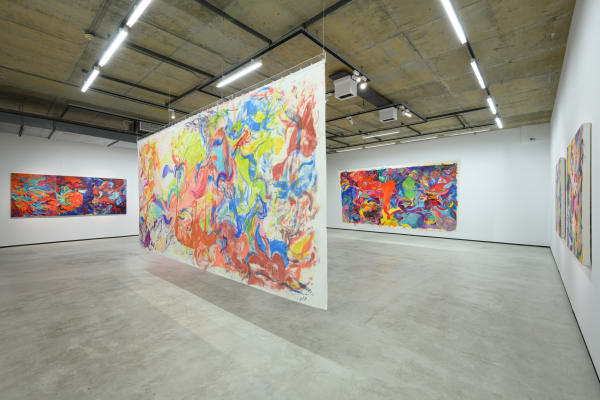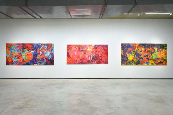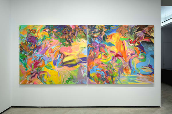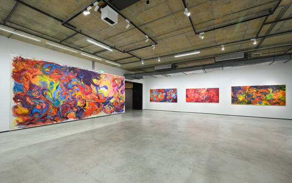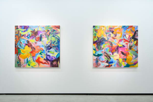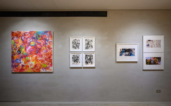 因此,王慶蘋的作品講求慢觀、浸淫與持續發現。同時,來自作品旺盛的生命力,也促使觀者以動態視角與之全面相遇──讓豐富的色彩層次、象徵性筆觸及線條共同交織出潛在新形態;在不斷流轉與游移的視角中,形得以不斷孕育新型,為其作品創造多元的視覺內涵與敘事可能。