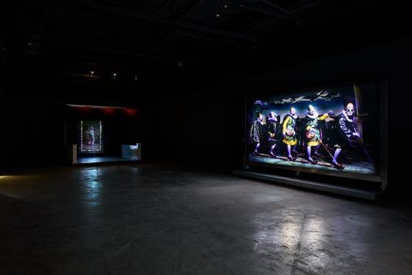 以自身情感作為引信,吳天章將作品盛滿台灣人熟悉的華麗與鄉愁。然而,在繁複的視覺語彙背後,時代與土地才是他急欲掀開、易傷易感的軟肉。「陌路歸真 1980 – 2011」呈現自單一敘事的黨國時代、後解嚴的過渡時期,直至台灣邁向民主進程⋯⋯等不同階段下藝術家的反覆思索與觀察,包含 80 年代初期《疏離系列》尋求超級寫實主義刻畫長期言論噤聲下沈默壓抑的社會氛圍、解嚴後的《政治系列》以新表現主義的粗獷筆觸、激情的具象手法傳達人道憫懷和對威權的憤怒、 90 年代初期的《家族肖像》回歸人民視角檢視台灣四大族群各時期的政治權力變遷、 90 年代中期《傷害告別式》等系列以台灣人熟悉的低俗品味堆棧不舒適的美感,只為拉扯出近代史中無以名之又揮之不去的包袱與傷痛。何謂真實?我們又該如何對這個時代誠實?在一片騷動的眾色之中,我們或將尋得答案。