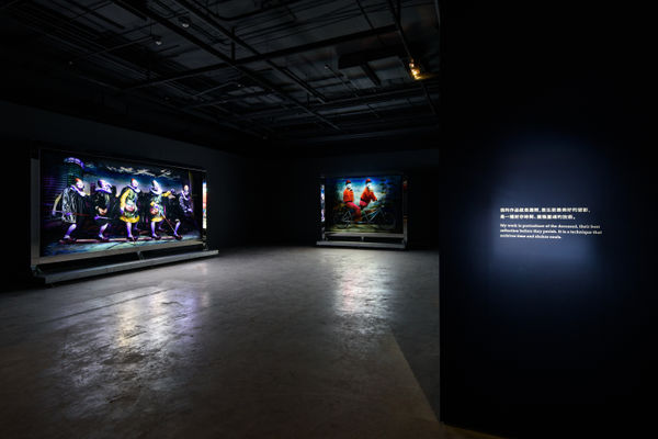 吳天章於此首度重現 2015 年威尼斯雙年展台灣館,完整展出《永協同心》、《瞎子摸巷》、《難忘的愛人》、《心所愛的人》與《再見春秋閣》五件費解又令人著迷的巨型作品。閱讀作品前建議先嚼食表象:吳天章不習慣留白,令人心生不快的任一細節都是他對台灣人集體潛意識的精心召喚。影像中鬼魅般的面孔往往帶著生理殘缺、過份精巧的皮膜仿若靈魂寄生的複體,二者造就生死並存的幻象,宛若國族式的集體欲望投射。一鏡到底下,魔術般的過場形同政權交替下的障眼法,背景音樂的台語老歌不經意地諷刺著台灣人的祖國眷戀情結,反映這座島嶼在長期殖民政權更迭下的集體記憶。在這裡,吳天章敘述的口吻有如詩人,他模糊空間與時序,撿拾意境,僅對生命直白。期待離別與再會之歌散去後,我們這一代人得以望見發炎的在地歷史,在晃蕩的時代裡握緊土地、別說再見。