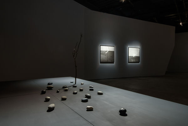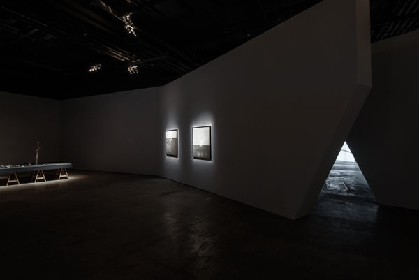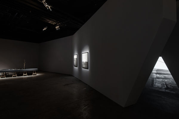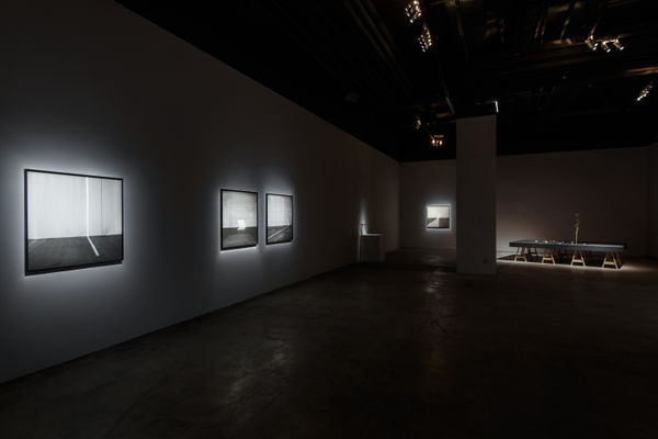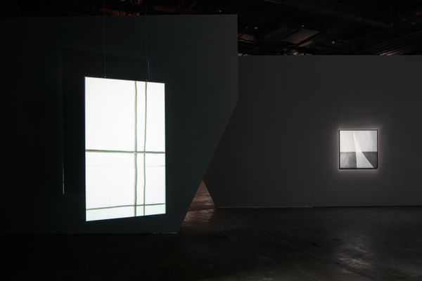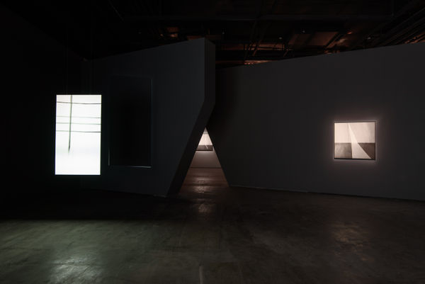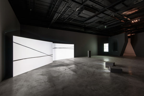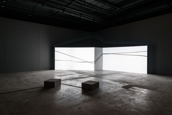 在王雅慧的創作過程中,影像媒材已內化成她思考的語言。隨著過往不斷地在觀者視野的邊境搜索,作品提出許多關於虛 / 實、內 / 外空間、時間彈性和觀看視野等角度,漸漸又融入記憶痕跡、生活經驗等相互參照的因子。此次展出一系列攝影作品、兩件投影裝置、一組動力裝置和一組雕塑,降低了以往經常出現的生活場景和過去經驗,以最低限的圖形發展出空間的移動。在曲折的空間中,王雅慧以水墨線條與方塊勾勒暈染,筆墨和影像在拉長的時延下創造出新一層未竟之地,彷彿每一個微小變化都訴說著萬物的生產、循環與消亡。每件攝影作品營塑出不同空間意向,而動力裝置的微微運動和錄像作品的翻轉疊合又宛如暗地發起的生命動能,使初視平靜的展場氛圍隱藏陣陣波動。時間於此次展出的作品中降低了敏感度,而空間卻在時間的稀化下有了更多層次的展現。換而言之,我們可感受到,整個展覽中空間的切片緩慢地被拼貼、濃縮和層組,空間的形態也產生一種意境移動觀者的所視及所在。