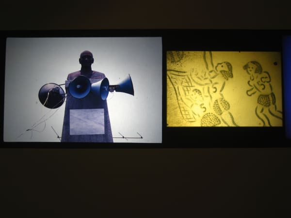 除了這些可視化、空間化的視覺文本外,也有書寫的聲音的文本。這些文本型式,如主體、客體又在互為鏡子或彼此的鏡像關係中,試圖將一些關於歷史、政治、島內、國際等,或至親、師長的批評與情感賦予時間性,讓故事緩緩道來,即「看時間看」。